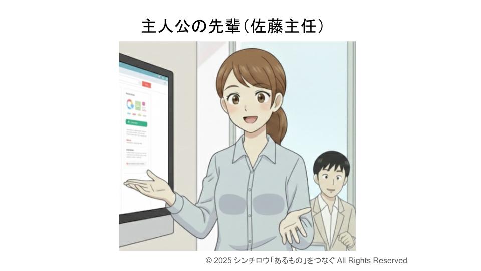 今年で3年目。花形のSE営業に異動となり、大手シオン社の担当となりました。彼はシオン社の担当になれたことが自慢です。前部署で身につけたSE技術を武器に貢献したいと、張りきっています。